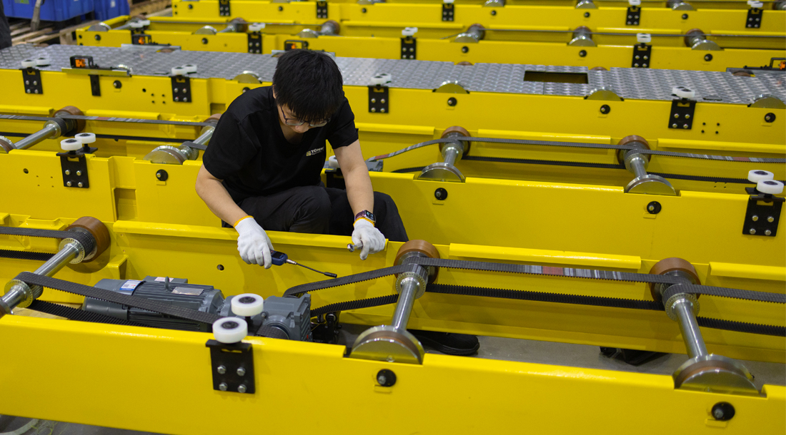在完整设备子项中,共涉及9条积放链。面对进口停止器交期不稳定的挑战,项目组每周与欧洲同步进度,确保整体项目按计划推进。在机械主导子项中,由于范围不包含电气执行部分,电停止器无法按原计划进行调试。为保障测试阶段顺利开展,项目团队主动协调,借调测试区电气物料,使设备具备基本运行条件。